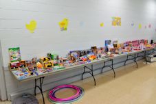 We had loads of eggs to hide and boiled eggs to give out to parents. McDonald's gift certificates made for a number of happy egg hunters.
